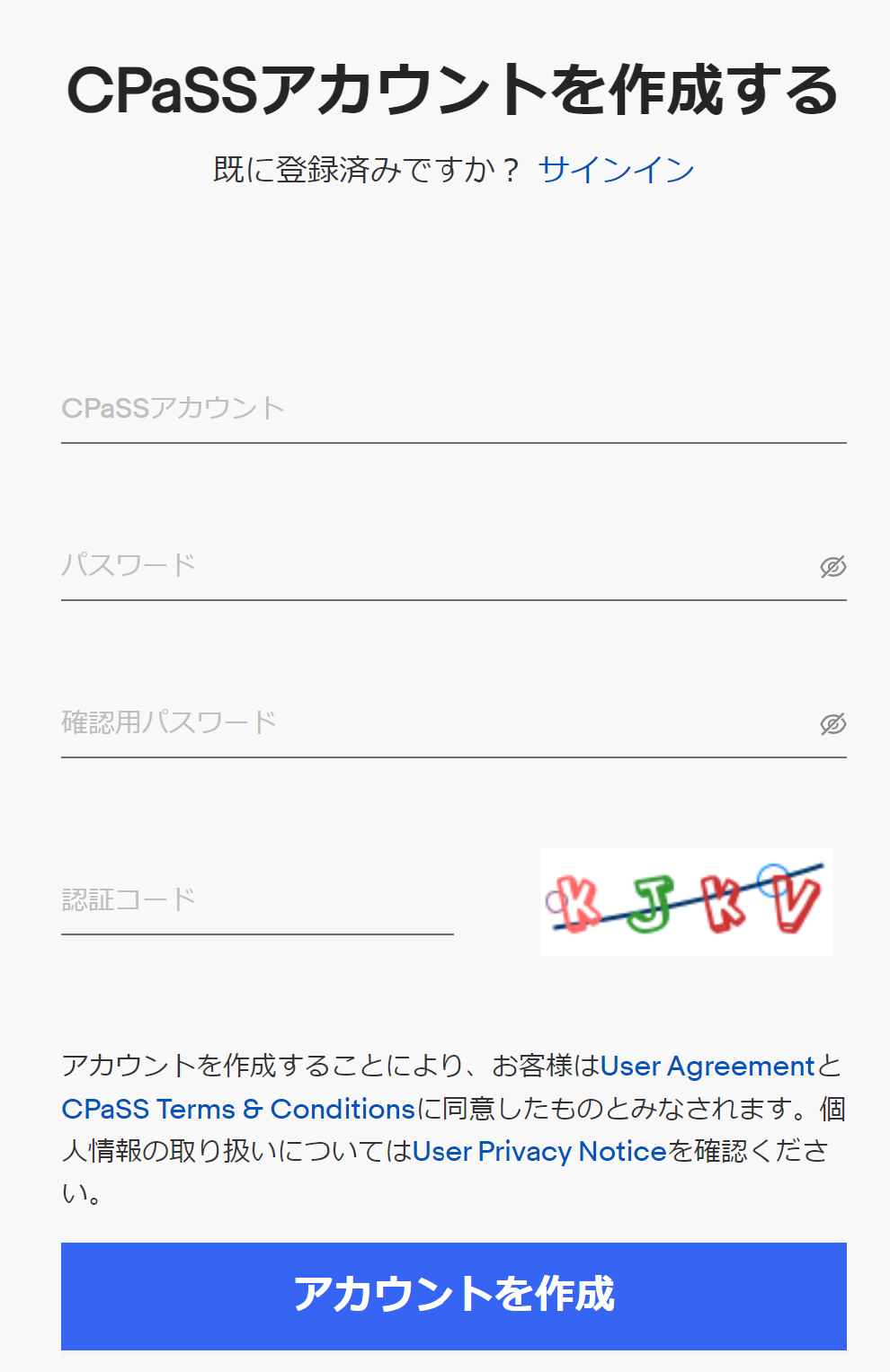 ~ CPaSSアカウントの新規作成 ~